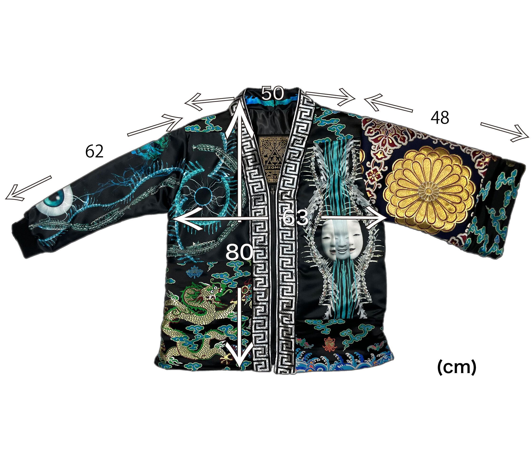 サイズ 身丈80cm 身幅63cm 肩幅50cm右袖丈62cm 左袖丈48cm